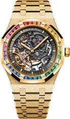 Audemars Piguet Royal Oak Frosted Gold Double Balance Wheel Openworked Yellow Gold 41mm Rainbow Gem-set Bezel | 15412BA.YG.1224BA.01