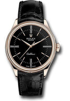 Rolex Cellini Time Watch - Everose Gold - Black Dial - Black Leather Strap - 50505 bkbk