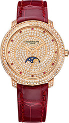Patek Philippe Ladies Complications 33.3mm Diamond Paved Dial and Bezel Rose Gold Leather - 4968-400R-001