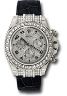 Rolex White Gold Cosmograph Daytona 40 Watch - Pave Diamond Enamel Arabic Dial - Black Leather Strap - 116599TBR