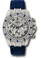 Rolex White Gold Cosmograph Daytona 40 Watch - Pave Diamond Enamel Roman Dial - Blue Leather Strap - 116599-12 SA