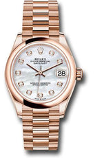 Rolex Everose Gold Datejust 31 Watch - Domed Bezel - Silver Diamond Dial - President Bracelet - 278245 mdp