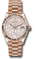 Rolex Everose Gold Datejust 31 Watch - Fluted Bezel - Diamond Paved Butterfly Dial - President Bracelet - 278275 pmopbp