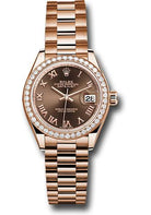 Rolex Everose Gold Lady-Datejust 28 Watch - 44 Diamond Bezel - Chocolate Roman Dial - President Bracelet - 279135RBR chorp