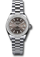 Rolex Platinum Lady-Datejust 28 Watch - 44 Diamond Bezel - Dark Grey Index Dial - President Bracelet - 279136RBR dkgip