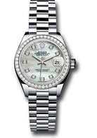 Rolex Platinum Lady-Datejust 28 Watch - 44 Diamond Bezel - Mother-of-Pearl Diamond Dial - President Bracelet - 279136RBR mdp