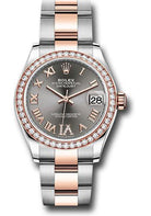 Rolex Steel and Everose Gold Datejust 31 Watch - 46 Diamond Bezel - Dark Rhodium Diamond Roman VI Dial - Oyster Bracelet - 278381RBR dkrhdr6o