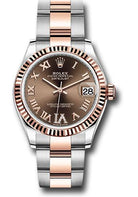 31mm Everose Rolesor case comprised of Oystersteel and 18K Everose gold, screw-down back, screw-down crown with twinlock double waterproofness system, 18K Everose gold fluted bezel, scratch-resistant sapphire crystal with cyclops lens over the date, chocolate dial, Roman numerals with diamond set 6, Rolex calibre 2236 perpetual self-winding movement with date at 3 o'clock, approximately 55 hours of power reserve, Eversose Rolesor Oyster bracelet made from a combination of steel and 18K everose gold with flat three-piece links, folding Oysterclasp buckle with Easylink 5mm comfort extension link. Waterproof to 100 meters. Baselworld 2019 release.