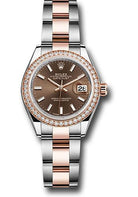 Rolex Steel and Everose Gold Rolesor Lady-Datejust 28 Watch - Diamond Bezel - Chocolate Index Dial - Oyster Bracelet - 279381RBR choio