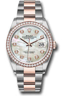 Rolex Steel and Everose Rolesor Datejust 36 Watch - Diamond Bezel - White Mother-Of-Pearl Diamond Dial - Oyster Bracelet - 126281RBR mdo