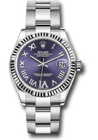 Rolex Steel and White Gold Datejust 31 Watch - Fluted Bezel - Aubergine Roman Diamond 6 Dial - Oyster Bracelet - 278274 aubdr6o