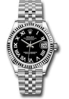 31mm white Rolesor case comprised of Oystersteel and 18K white gold, screw-down back, screw-down crown with twinlock double waterproofness system, 18K white gold fluted bezel, scratch-resistant sapphire crystal with cyclops lens over the date, black dial, Roman numerals, Rolex calibre 2236 perpetual self-winding movement with date at 3 o'clock, approximately 55 hours of power reserve, Oystersteel Jubilee bracelet with five-piece links, concealed folding Crownclasp buckle. Waterproof to 100 meters.