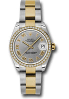 Rolex Steel and Yellow Gold Datejust 31 Watch - 46 Diamond Bezel - Grey Roman Dial - Oyster Bracelet - 178383 gro
