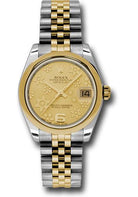 Rolex Steel and Yellow Gold Datejust 31 Watch - Domed Bezel - Champagne Floral Motif Dial - Jubilee Bracelet - 178243 chfj