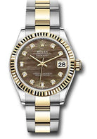 Rolex Steel and Yellow Gold Datejust 31 Watch - Fluted Bezel - Dark Mother-of-Pearl Diamond Dial - Oyster Bracelet - 278273 dkmdo