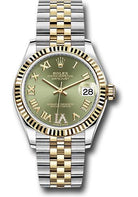 Rolex Steel and Yellow Gold Datejust 31 Watch - Fluted Bezel - Olive Green Diamond Roman Six Dial - Jubilee Bracelet - 278273 ogdr6j