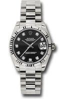 Rolex White Gold Datejust 31 Watch - Fluted Bezel - Black Diamond Dial - President Bracelet - 178279 bkdp