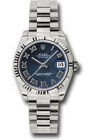 Rolex White Gold Datejust 31 Watch - Fluted Bezel - Blue Roman Dial - President Bracelet - 178279 blrp