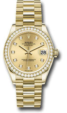 Rolex Yellow Gold Datejust 31 Watch - Diamond Bezel - Champagne Diamond Dial - President Bracelet - 278288RBR chdp