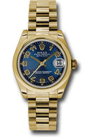 Rolex Yellow Gold Datejust 31 Watch - Domed Bezel - Blue Concentric Circle Arabic Dial - President Bracelet - 178248 blcap