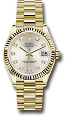 Rolex Yellow Gold Datejust 31 Watch - Fluted Bezel - Silver Diamond Dial - President Bracelet - 278278 sdp