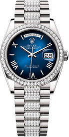Rolex Day-Date 36 36mm Blue Ombré Roman Dial Diamond-Set Bezel with Diamond-Set President Bracelet - 128349RBR | 2024 Model