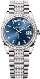 Rolex Day-Date 36 36mm Bright Blue Diamond-Set Dial Diamond-Set Bezel with Diamond-Set President Bracelet - 128349RBR | 2024 Model