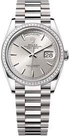 Rolex Day-Date 36 36mm Silver Stick Dial Diamond-Set Bezel President Bracelet - 128399TBR | 2024 Model
