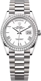 Rolex Day-Date 36 36mm White Dial Diamond-Set Bezel President Bracelet - 128349RBR | 2024 Model