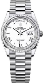 Rolex Day-Date 36 36mm White Roman Dial Diamond-Set Bezel President Bracelet - 128396TBR | 2024 Model