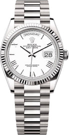 Rolex Day-Date 36 36mm White Roman Dial Fluted Bezel President Bracelet - 128239 | 2024 Model