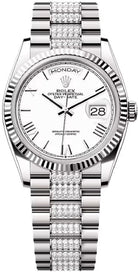 Rolex Day-Date 36 36mm White Roman Dial Fluted Bezel with Diamond-Set President Bracelet - 128239 | 2024 Model