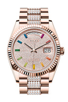 Rolex Day-Date 36 Diamond Paved Dial Fluted Bezel 18K Everose gold Diamond President Watch 128235