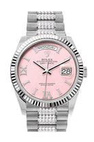 Rolex Day-Date 36 Pink Opal Diamond Dial Fluted Bezel White Gold Diamond President Watch 128239