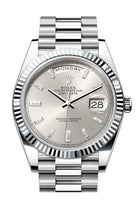 Rolex Day-Date 40 Silver Diamonds Dial Fluted Bezel Platinum President Men's Watch 228236