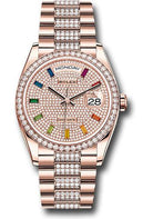 Rolex Everose Gold Day-Date 36 Watch - Diamond Bezel - Diamond-Paved Rainbow Sapphire Dial - Diamond President Bracelet - 128345RBR dprsdp