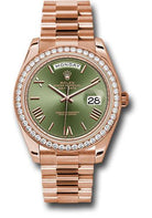 Rolex Everose Gold Day-Date 40 Watch - Everose Gold Bezel - Olive Green Bevelled Roman Dial - President Bracelet - 228345RBR ogrp