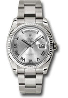 Rolex White Gold Day-Date 36 Watch - Fluted Bezel - Rhodium Roman Dial - Oyster Bracelet - 118239 rro