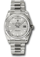 Rolex White Gold Day-Date 36 Watch - Fluted Bezel - Silver Index Dial - President Bracelet - 118239 ssp