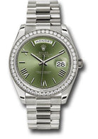 Rolex White Gold Day-Date 40 Watch - Bezel - Olive Green Bevelled Roman Dial - President Bracelet - 228349RBR ogrp
