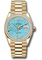 Rolex Yellow Gold Day-Date 36 Watch - Diamond Bezel - Turquoise Diamond Roman Dial - President Bracelet - 128348RBR tdidrp