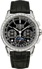 Patek Philippe Grand Complications Perpetual Calendar Moon Phases Chronograph Platinum Diamond Baguette Black | 5271P-001