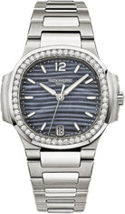 Patek Philippe Nautilus Ladies 33.6mm Blue Stainless Steel Mother of Pearl Index Diamond Bezel Date | 7018/1A-010