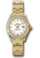 Rolex Yellow Gold Lady-Datejust Pearlmaster 29 Watch - 32 Diamond Bezel - White Diamond Dial - 80298 wd