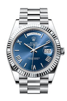Exemplifying the pinnacle of horological mastery and sophistication, the Rolex Day-Date 40 Blue Dial Fluted Bezel Platinum President Men's Watch stands as a testament to luxury and precision.