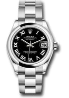 31mm Oystersteel case, screw-down back, screw-down crown with twinlock double waterproofness system, domed bezel, scratch-resistant sapphire crystal with cyclops lens over the date, black dial, Roman numerals, Rolex calibre 2236 perpetual self-winding movement with date at 3 o'clock, approximately 55 hours of power reserve, Oystersteel Oyster bracelet with flat three-piece links, concealed folding Oysterclasp buckle. Waterproof to 100 meters.