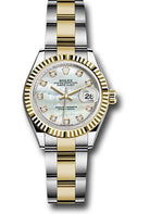 Rolex Steel and Yellow Gold Rolesor Lady-Datejust 28 Watch - Fluted Bezel - White Mother-Of-Pearl Diamond Dial - Oyster Bracelet - 279173 mdo
