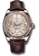 Rolex Everose Gold Sky-Dweller Watch - Sundust Roman Dial - Brown Leather Strap - 326135 su
